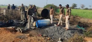 पुलिस अधीक्षक महोदय अमन सिंह राठौर द्वारा दिए गए निर्देश के पालन में अतिरिक्त पुलिस अधीक्षक महोदय श्री कमल मौर्य अनुविभागीय अधिकारी बरौनी श्री उपेंद्र दीक्षित के मार्गदर्शन में थाना प्रभारी गोराघाट श्री दर्शन शुक्ला द्वारा सीतापुर कंजर डेरा पर अवैध शराब निर्माण की सूचना पर से कार्रवाई की गई जहां पर तीन भट्टी संचालित पाई है जिन्हे नष्ट किया गया करीबन 25000 लीटर लुहान को नष्ट किया गया दो जेसीबी की सहायता से जमीन में गड़े हुए करीबन 150प्लास्टिक के ड्रामो को खुदवा कर निकलवाया गया भट्टी की कच्ची शराब होना पाई गई करीबन 40 ड्रम भरी हुई अवस्था में जप्त किए गए जबकि 20 ड्रम जेसीबी से निकालते समय फूटने से शराब नष्ट नष्ट हो गई 90 ड्रम खाली पाए गए प्रत्येक ड्रम 200 लीटर कच्ची शराब का हो ना पाई गई मौके पर आबकारी विभाग को तलब किया गया जिसके द्वारा भट्टी एवं उससे संबंधित सामग्री कीमती करीब ₹2000000 जप्त किए गए संपूर्ण कार्रवाई में करीबन ₹3000000 की शराब जप्त की गई एवं 2000000 रुपए की शराब नष्ट की गई साथ ही संपूर्ण कार्यवाही में करीबन 70 से 75 लाख की शराब तथा समान जप्त किया संपूर्ण कार्रवाई आज दिनांक 15/1/2021 को सुबह 6:00 बजे से शाम 5:00 बजे तक अतिरिक्त पुलिस अधीक्षक महोदय के प्रत्यक्ष नियंत्रण में की गई संपूर्ण कार्रवाई में अतिरिक्त पुलिस अधीक्षक महोदय की थाना प्रभारी गोराघाट दर्शन शुक्ला स उ नि भूपेंद्र जाट प्रधान आरक्षक सुनील शर्मा प्र आरक्षक 373 अंबिका नन्दन शर्मा आरक्षक 489रामेश्वर शर्मा 509 वीरेंद्र शर्मा आरक्षक 388 राजकुमार आरक्षक 810 अंकित शर्मा आरक्षक 699 जितेंद्र साहू आरक्षक 549 इंदल सेंगर महिला आरक्षक 586 आरती तोमर महिला आरक्षक 972 प्रियंका भदोरिया महिला आरक्षक 974 सपना रावत आरक्षक चालक 290 जिनेंद्र तिवारी एवं 896 शुभम यादव एवं अन्य वालों की सराहनीय भूमिका रही ।