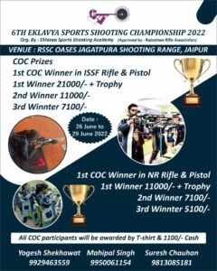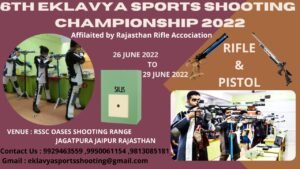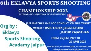 जयपुर की एकलव्य स्पोर्ट्स शूटिंग एकेडमी के द्वारा 6th एकलव्य स्पोर्ट्स शूटिंग चैंपियनशिप 2022 का आयोजन बड़ी धूमधाम से किया जाएगा