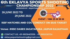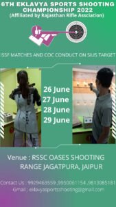 आरएसएससी ओएसिस जगतपुरा शूटिंग रेंज, जयपुर में 6 एकलव्य स्पोर्ट्स शूटिंग चैंपियनशिप 2022 का मंचन 26 जून से 29 जून, 2022 तक