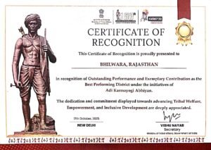 भीलवाड़ा जिले ने एक बार फिर प्रदेश का मान बढ़ाया है। भारत सरकार के जनजातीय कार्य मंत्रालय द्वारा जिले को आदिवासी कल्याण और सशक्तिकरण के क्षेत्र में उत्कृष्ट कार्य के लिए राष्ट्रीय स्तर पर सम्मानित किया गया है। यह सम्मान “आदि कर्मयोगी अभियान” के अंतर्गत प्रदान किया गया, जिसका उद्देश्य देशभर में आदिवासी कल्याण के क्षेत्र में उल्लेखनीय कार्य करने वाले जिलों को पहचानना और प्रेरित करना है।